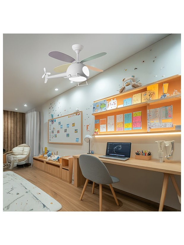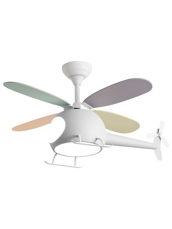 Ανεμιστηρας Οροφης Παιδικος Ελικοπτερακι Λευκος 29w με led φωσ 48w και Κοντρολ