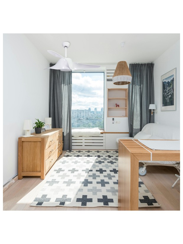 Ανεμιστηρας Οροφης Χρωμα Λευκο με led φωσ και Κοντρολ Φ132 dc Μοτερ 35w