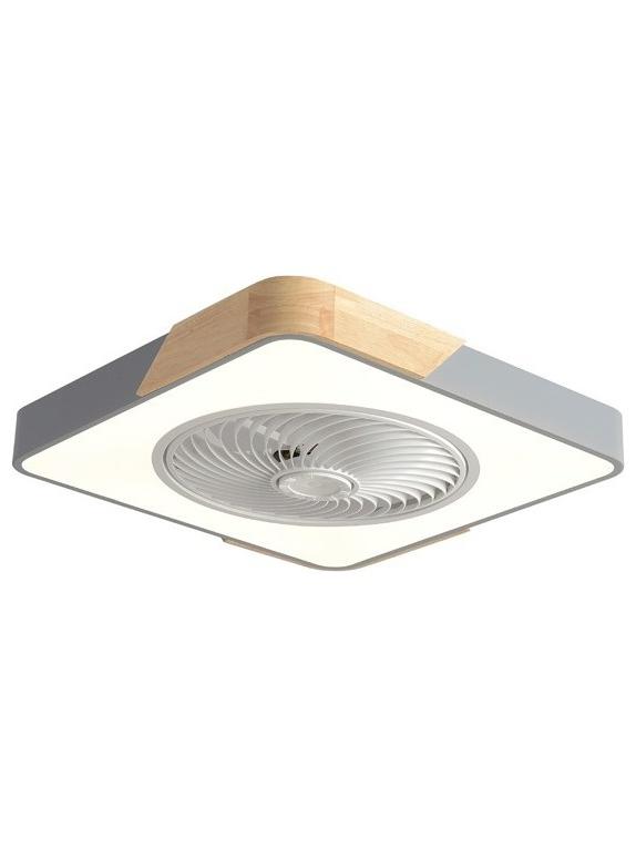 Ανεμιστηρας Πλαφονιερα Οροφης Τετραγωνος Γκρι με Ξυλο 50x50 dc Μοτερ 15w me led φωσ 41w