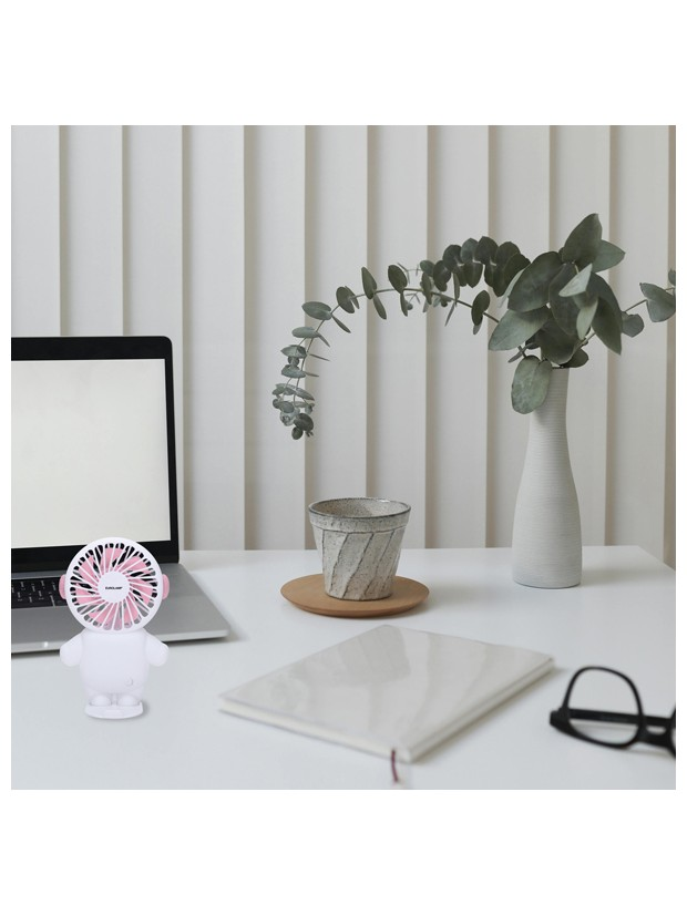 Ανεμιστηρας Χειρος Επαναφορτιζομενος με usb φ8 Λευκο-ροζ