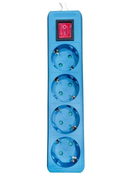 Πολυπριζο 4 Καλωδιο 2m + Διακοπτη Μπλε με Προστασια Επαφων