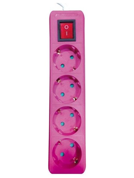 Πολυπριζο 4 Καλωδιο 2m + Διακοπτη ροζ με Προστασια Επαφων
